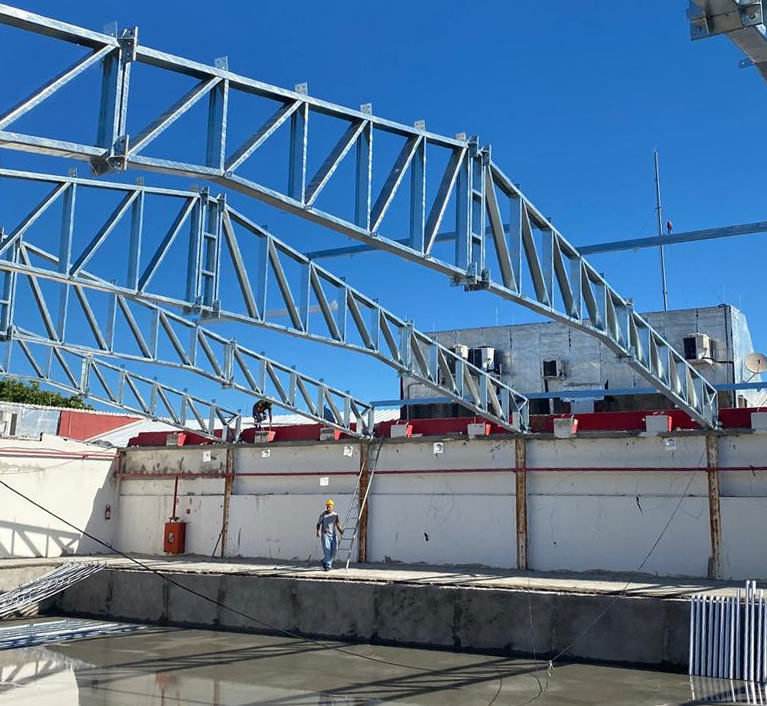 Corte e furação com precisão. Após vem a Soldagem e União das peças para formar os módulos e componentes da estrutura. Após a fabricação, as estruturas podem receber tratamento, como pintura ou galvanização, para aumentar a resistência à corrosão e durabilidade.