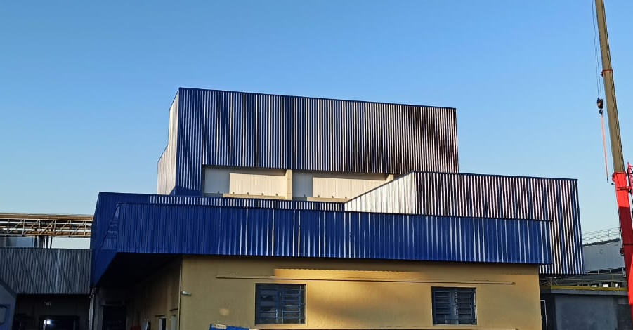 Utilizando guindastes, as peças fabricadas são içadas e posicionadas nos locais especificados no projeto.